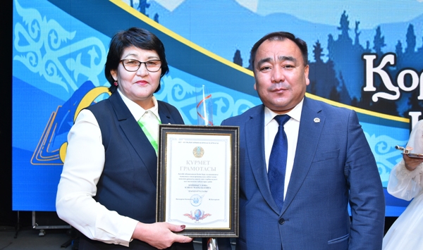 Облыстық білім басқармасының басшысы Жолдас Батырхан облыс әкіміО.Оразалиннің Алғыс хатымен ардагер ұстаздар М.Досқуатов, Қ.Нұржігітова және Қ.Аманғалиеваларды марапаттады. Сондай-ақ Ақжарқын Отарова, Қалқа Сасырауова секілді ардагерлерге «Білім және ғылым қызметкерлерінің кәсіподағына сіңірген еңбегі үшін» төсбелгісін тапсырды. Көптеген мұғалімдер облыстық білім басқармасының Құрмет грамоталары мен Алғыс хаттарын иеленді.
