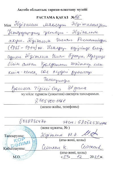 Менің бір жаман ойым айтады: сол кезде Алға ауданы Ключевой болды, орыстың қол астында отырған қазақты қойша санап, тізімге алғанына түк күмәнім жоқ! Сонда не облыстық мұрағатта, не аудандық мұрағатта түк дерек жоқ? Тіпті болмаса әскери құжаттарда, әскери мұрағатта бір дерек болуы мүмкін ғой?..