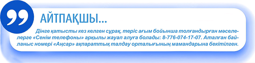 «Дін — ұстай алсаң қасиетің, ұстай алмасаң қасіретің» демекші, тура жолды таңдадым деп теріс ағымдағылардың қатарын толықтырғандар арамызда аз емес… Бұл ең әуелі діни сауаттың жоқтығынан екені рас.