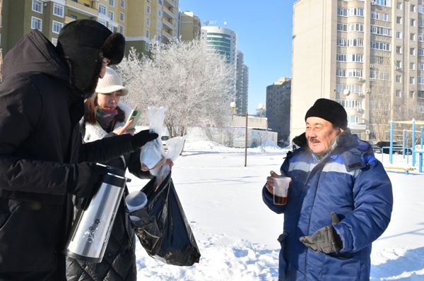 Астана ауданы әкімдігінің қызметкерлері мен еріктілер бірігіп «Игі істер» акциясын ұйымдастырды. Олар санитарлық тазалық және қар тазалау жұмыстарында жүрген коммуналдық қызмет саласының жұмысшыларына ыстық шай мен бауырсақ таратты.