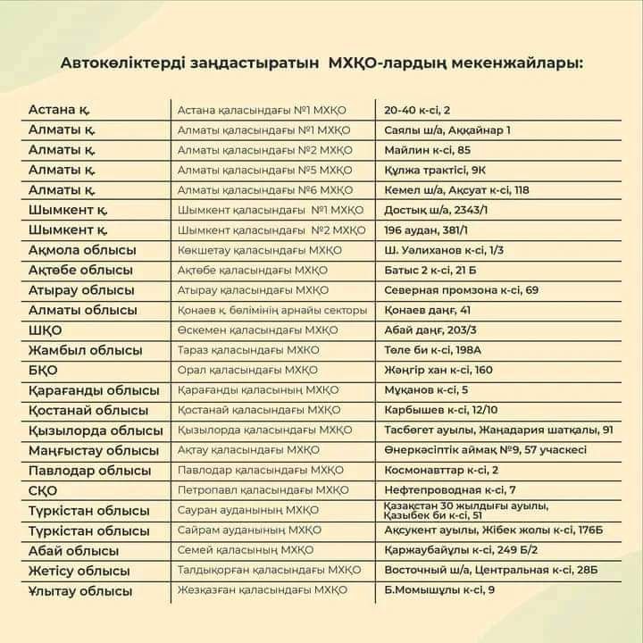 Шетелдік автокөліктерді заңдастыру кезеңдерін тез әрі дұрыс өту жолдары бойынша нұсқаулық дайындалды. Сондай-ақ, автокөліктерді тіркеу жұмыстары жүргізілетін МХҚО-лардың мекенжайларымен келесі суреттерде таныс бола аласыздар. ⤵️