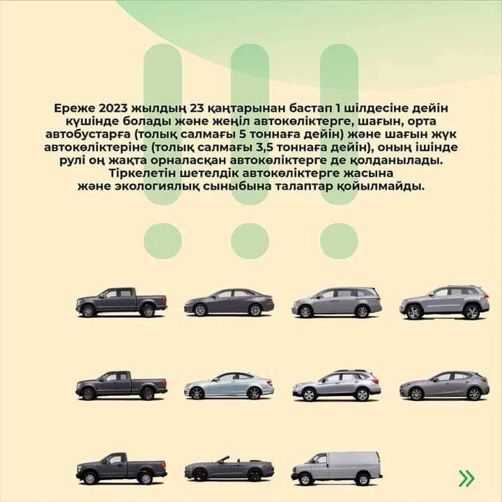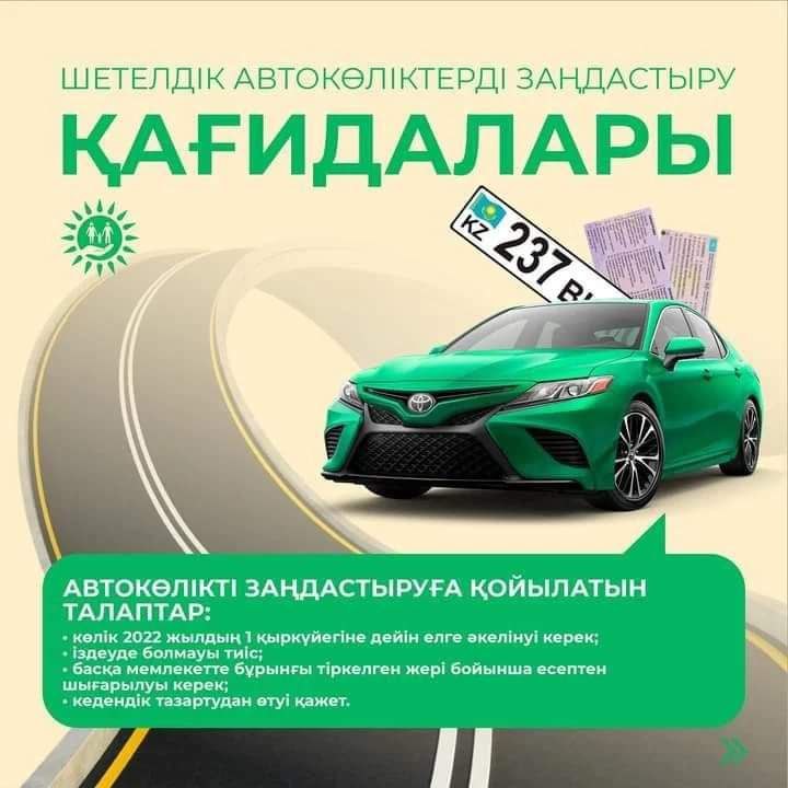 2023 жылғы 23 қаңтардан бастап 1 шілдеге дейін шетелдік автокөліктерді заңдастыруға болады