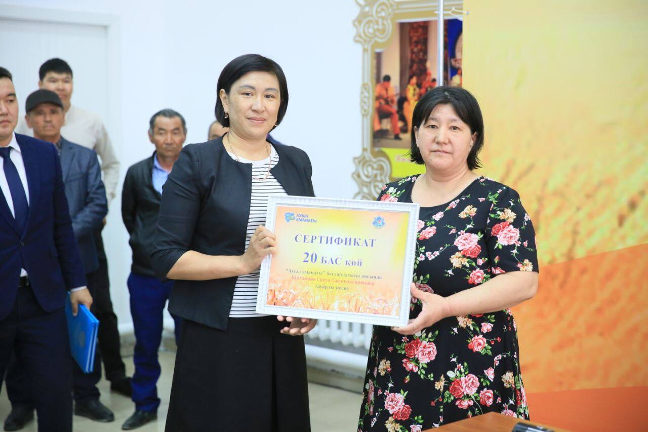Кемер ауылының тұрғыны Бақытбек Ертілеуов 2022 жылы «Берік-А» шаруа қожалығында 4 сиырды тауарлы несие беру шарттарымен алып, жобаның қатысушысы атанды. Алтыншы баланың дүниеге келуін күтіп отырған Ертілеуовтер отбасысы көпбалалы санатына жататындықтан, жобаға қатыстыру кезінде басымдық берілді.