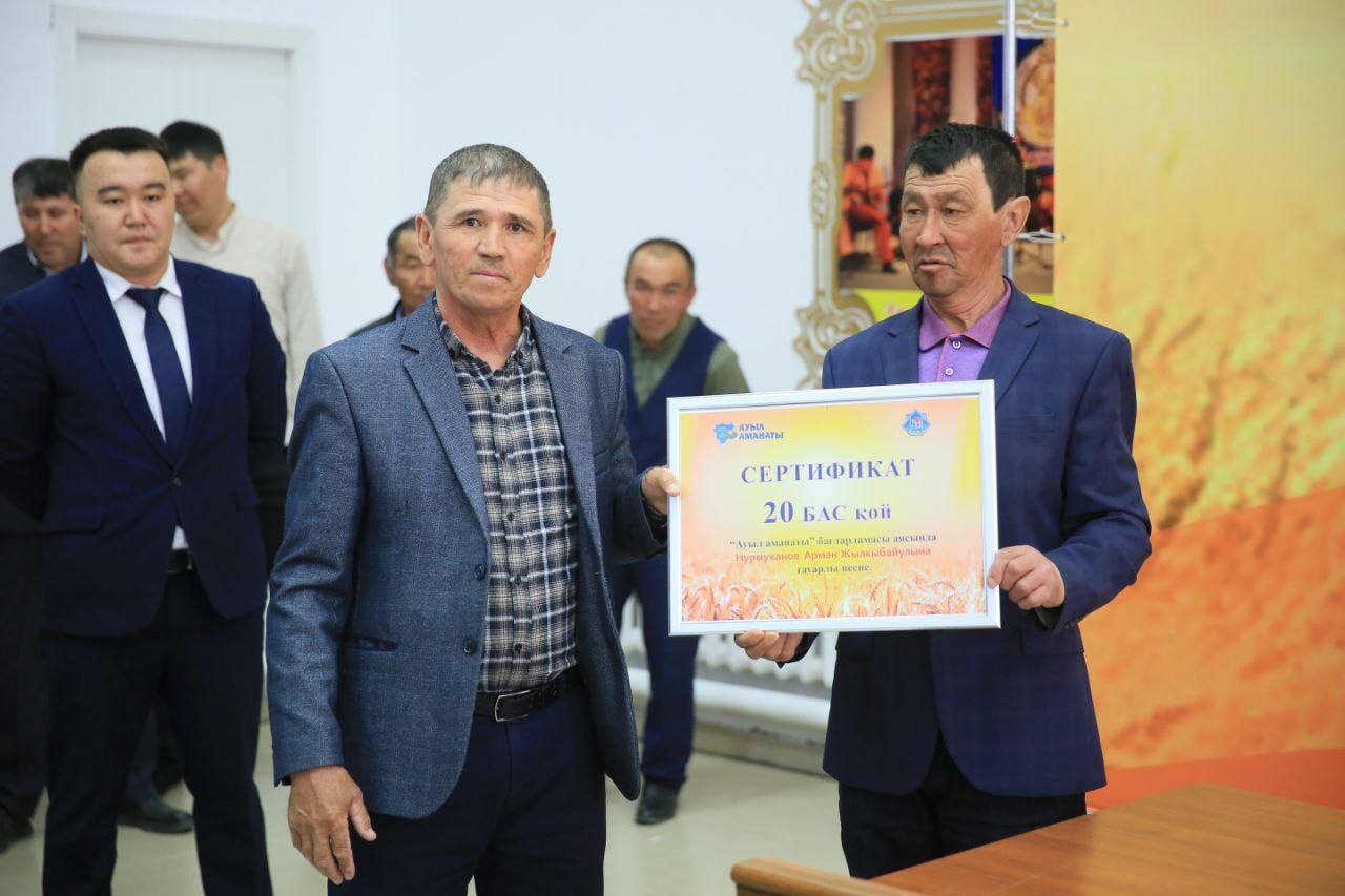 Көптоғай ауылдық округінде облыс әкімі «Ауыл аманаты» бойынша өңірде алғаш болып жеңілдетілген қарыз алған Болатбек Омаровтың жеке ауласында болды. Көпбалалы отбасының отағасы ұзақ уақыт бойы жұмыссыз қалған, жоба туралы біліп, тауарлы несие алуға шешім қабылдаған. Алдымен 20 қой алды. Кейін құс шаруашылығымен айналысу үшін жеңілдетілген ақшалай қарыз алуға өтініш берді. Арнайы курстан оқып, жүздей тауық сатып алды, енді шаруашылығын 500 қазбен кеңейтуді жоспарлап отыр.