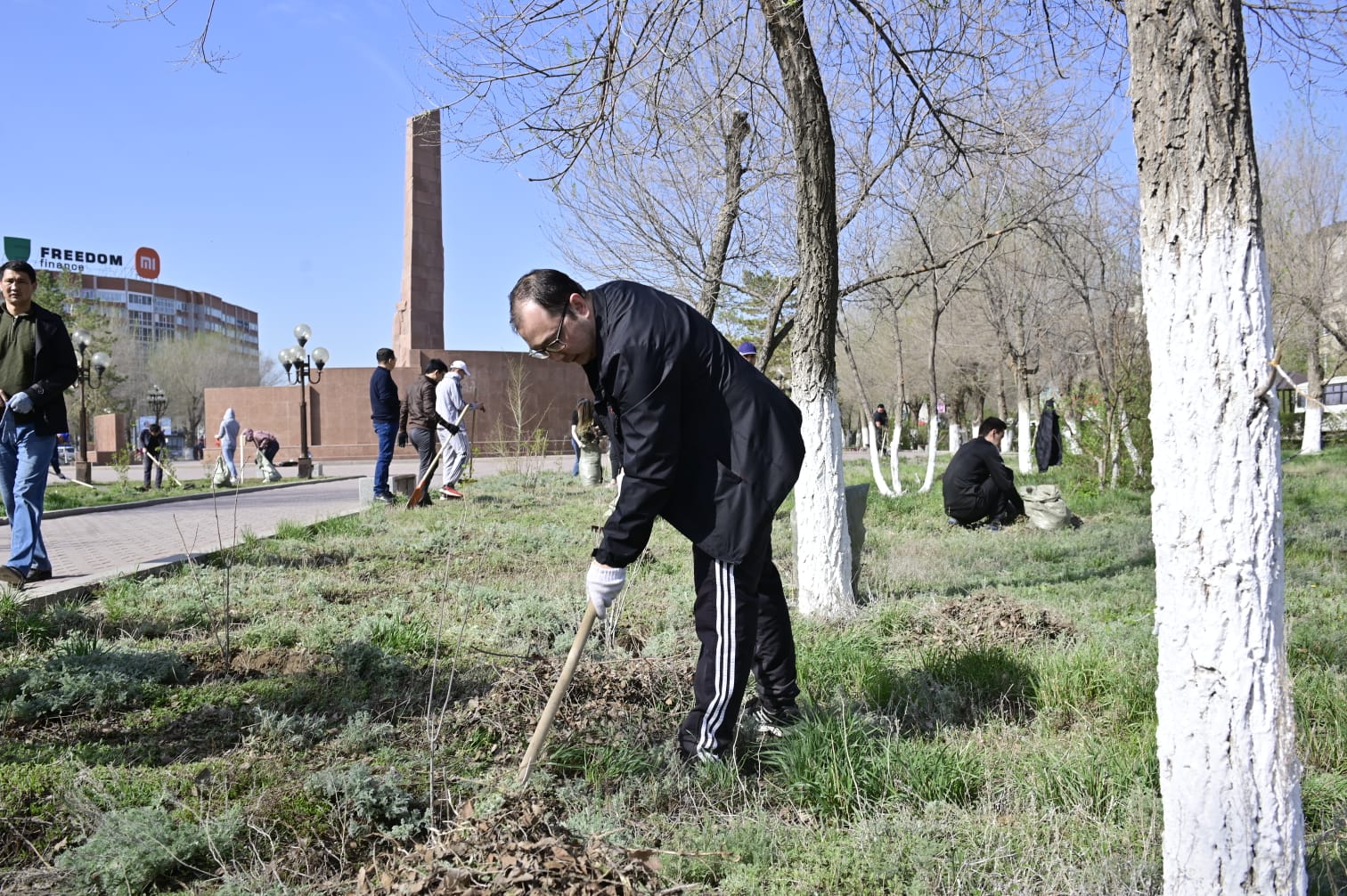 29 сәуір күні ертеңгілік Ақтөбенің орталығындағы Мәңгілік алау ескерткішінің маңына, әдеттегі серуендеушілерден бөлек, қолына күрек, тырма сынды құралдар ұстаған ондаған адам жиналды.