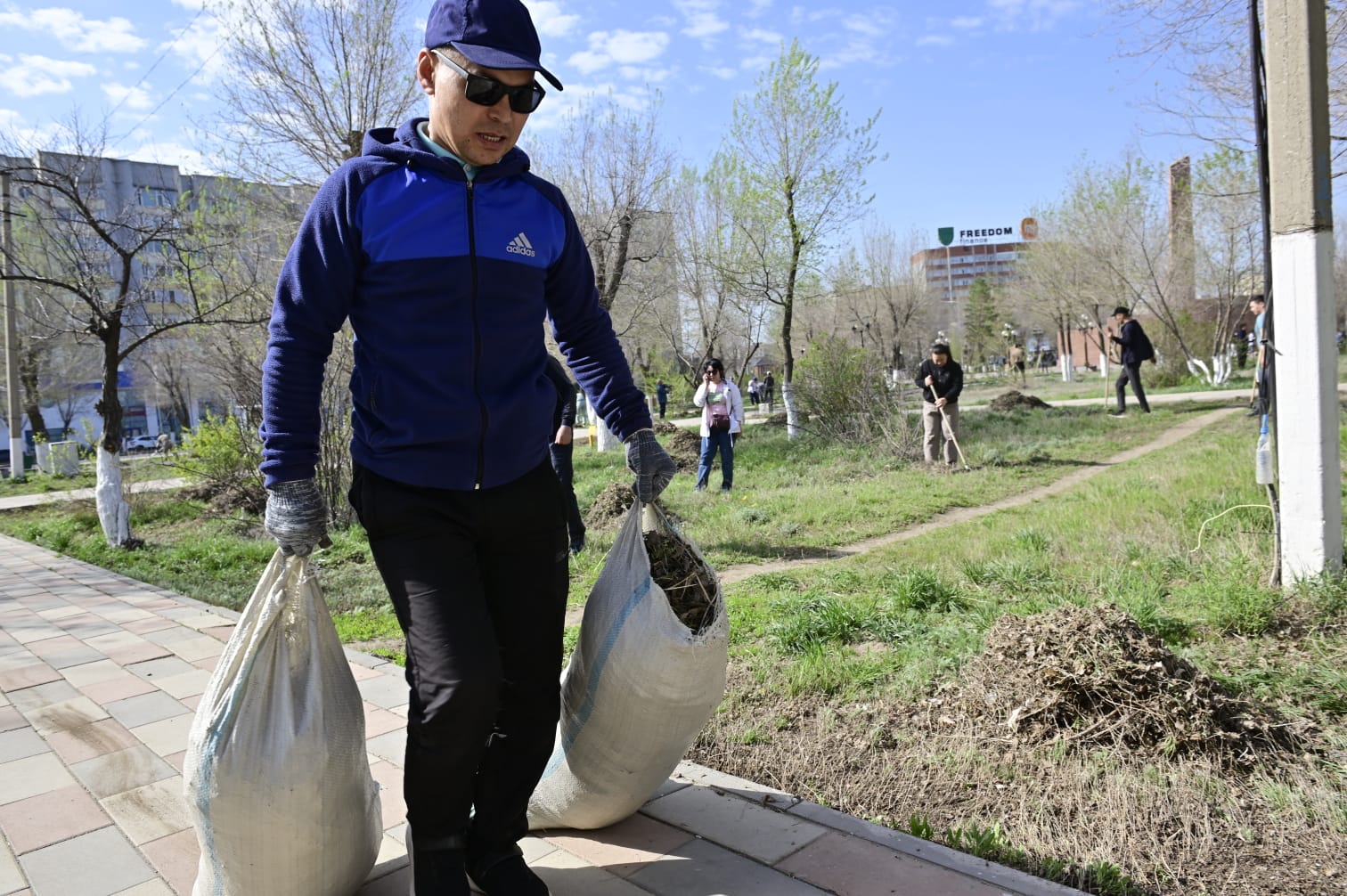 Сенбілікке келгендер әрқайсысы өздеріне бөлінген учаскелерді тынымсыз тырмалап, аз уақытта қураған жапырақ, қоқысқа толы қапшықтар тізіле бастады. Ал бірер сағатта гүлзар іші де тап- тұйнақтай болды.