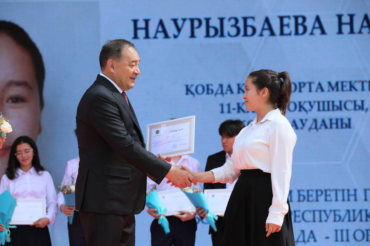 Облыс әкімі республикалық пәндік олимпиаданың 32 жеңімпазына алғыс хаттар мен ақшалай сыйлықтар табыстап, білім шыңын бағындыру жолында сәттілік тіледі.
