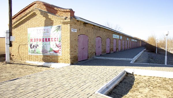 Жергілікті жерде күйдірілген қызыл кірпіштен салынған құрылыс 1865 жылы 19 маусымда басталып, әрбірінде 9 дүңгіршек-лавкадан тұратын 15 корпус пен жәрмеңке комитетінің үйі 1867 жылы әзір болған. Сонымен қатар қазіргі интернат қызметін атқарып тұрған «Красавин үйі» ауласынан 8×8 метрлік өлшемде банк үйі есебінде қызыл тастан үй тұрғызылып, жәрмеңке комитеті үйімен арасында ақша тасымалдайтын адам бойының биіктігіндей 700 метрдей жерасты жолы қазылған.