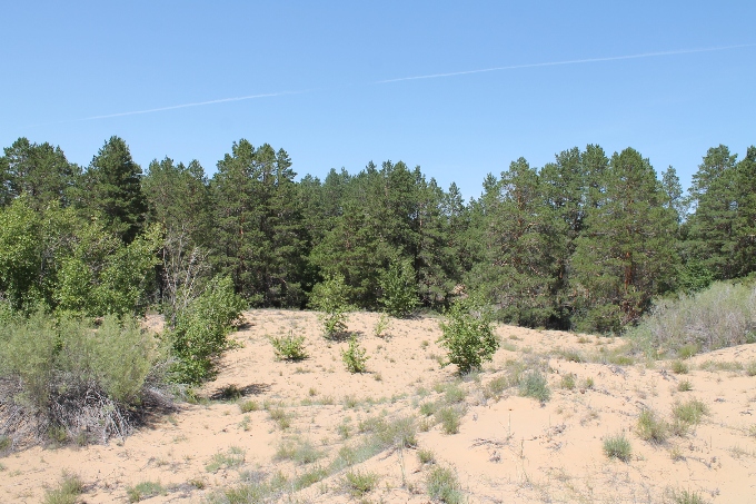 Бұл көшпелі құм санатына жатады. 1896 жылы полковник Н.Иванов осықұмның көшуін тоқтату мақсатында Орынбор қаласынан түйе керуеніне артып, қарағай, қайың, көктерек, қараағаш қөшеттерін әкеліп, отырғызған.Бүгінде жергілікті орман шаруашылығы ағашы жоқ жерлерге тал-терек өсірумен айналысып келеді.