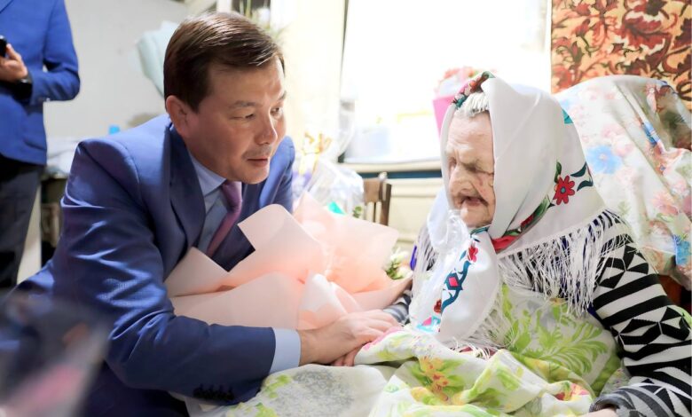 Асхат Шахаров 100 жасқа толған тыл ардагерін мерейтойымен құттықтады