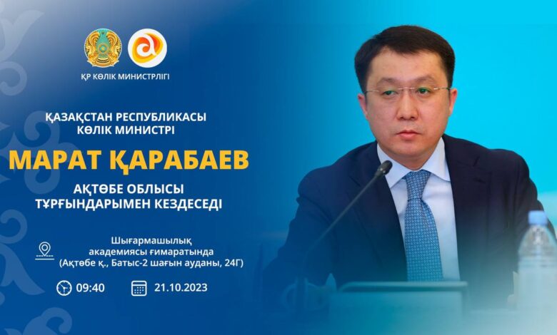 2023 жылғы 21 қазанда ҚР Көлік министрі Марат Қарабаев Ақтөбе облысының тұрғындарымен кездесу өткізеді.