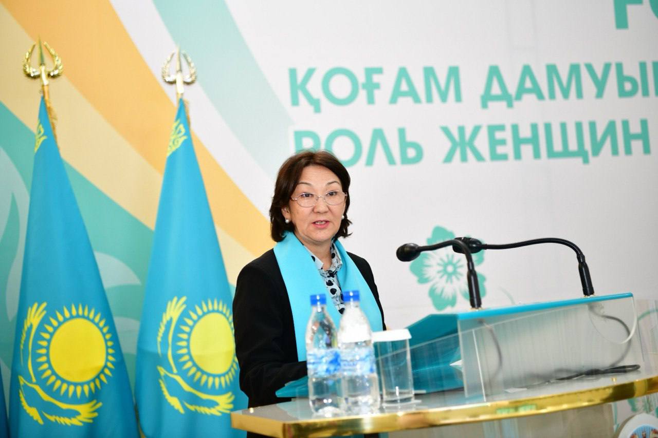 Облыстық мәслихат төрағасы Гүлқасима Сүйінтаева өз сөзінде небәрі әлемнің 10 елінде әйел мемлекет басшысы, 13 елде үкімет басшысы лаузымында қызмет атқаратынын атап өтті. Гүлқасима Сүйінтаева әйелдердің саясатқа қатысуы үшін жағдай жасауды ұсынды.