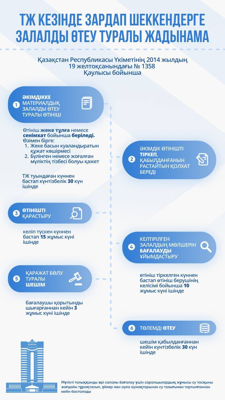 6. Зардап шеккендерге төлем тиісті шешім қабылданғаннан кейін күнтізбелік 30 күн ішінде жүзеге асырылады.
