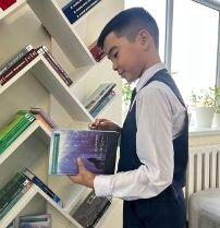 — «Жақсы кітап — жан азығы» демекші, мен үнемі кітап оқуға уақыт табамын. Кітапты жаныма серік еткелі қазақ әдебиетіне деген қызығушылығым арта түсті. Әзірге қазақ, орыс тілдерінде кітаптар оқып жүрмін. Алдағы уақытта ағылшын тілінде де кітаптар оқу жоспарымда бар. Менің кітап оқуға деген қызығушылығымды арттырған Нұрпейіс Байғанин атындағы балалар кітапханасының кітапханашыларына алғысым шексіз. Олар маған «Book pay it» жобасына қатысуды ұсынып, жаңашыл жобаның артықшылығын түсіндірді. Осы жоба аясында бір айдың ішінде он екі кітап оқып, шетел әдебиетінің озық шығармаларымен де таныстым. Осы кітаптардың ішінен ұнағаны — Миясе Сертбаруттың «Сыр жасырған тұман» шығармасы. Жаңа технологиялармен жабдықталған кітапхананың ішкі және сыртқы келбеті, заманауи коворкингтері мен оқу залдары ерекше ұнады. Кең әрі кітап қоры мол кітапханада бос уақытымды өткізгенді ұнатамын.