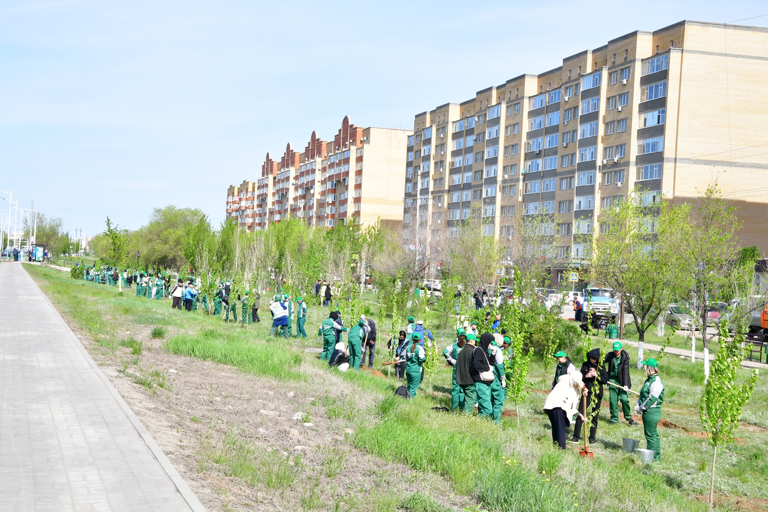 Бүгін ардагерлер мен жастар қаламыздың Болашақ ауданындағы халықаралық әуежайға баратын жол бойын тазалап, сол жерге 300-ден астам терек екті.