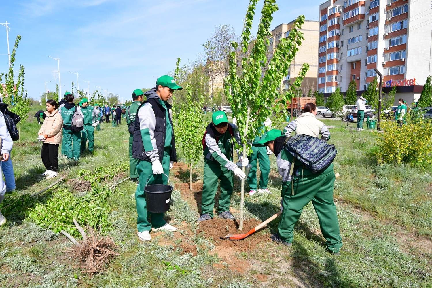 Көшет отырғызуға «Жасыл ел» жасақтарының жауынгерлерімен бірге еріктілер, «Жас Invent» жастар ұйымының мүшелері, мектеп оқушылары, облыстық ардагерлер кеңесінің мүшелері және мемлекеттік қызметкерлер шықты.