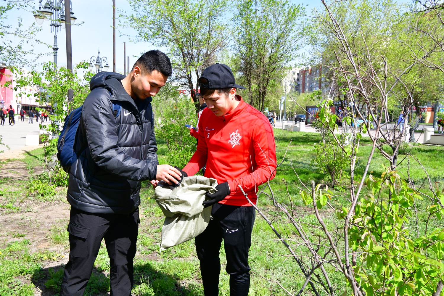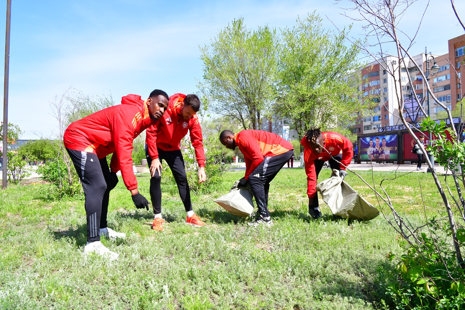 Футболшылар жанкүйерлерімен бірге қала тазалады