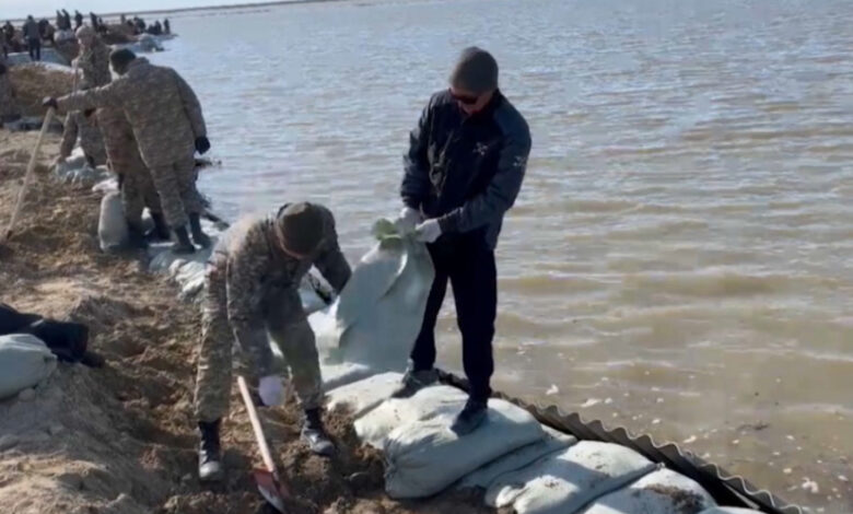 Ырғыз ауданында Құйлыс, Жайсаңбай, Белшер елді мекендерінде су тасқынына қарсы бөгеттерді нығайту жұмыстары әлі жалғасып жатыр.