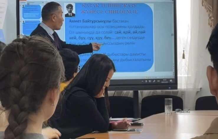 «Қазақ тілі» халықаралық қауымдастығының мүшесі Серік Ерғалимен өткен басқосу оқытушылар мен студенттердің арнайы шақыртуымен ұйымдастырылды. «Сәті түскен сұхбат» атты шеберлік сағатында тіл білімі саласына қатысты мәселелер қозғалды.