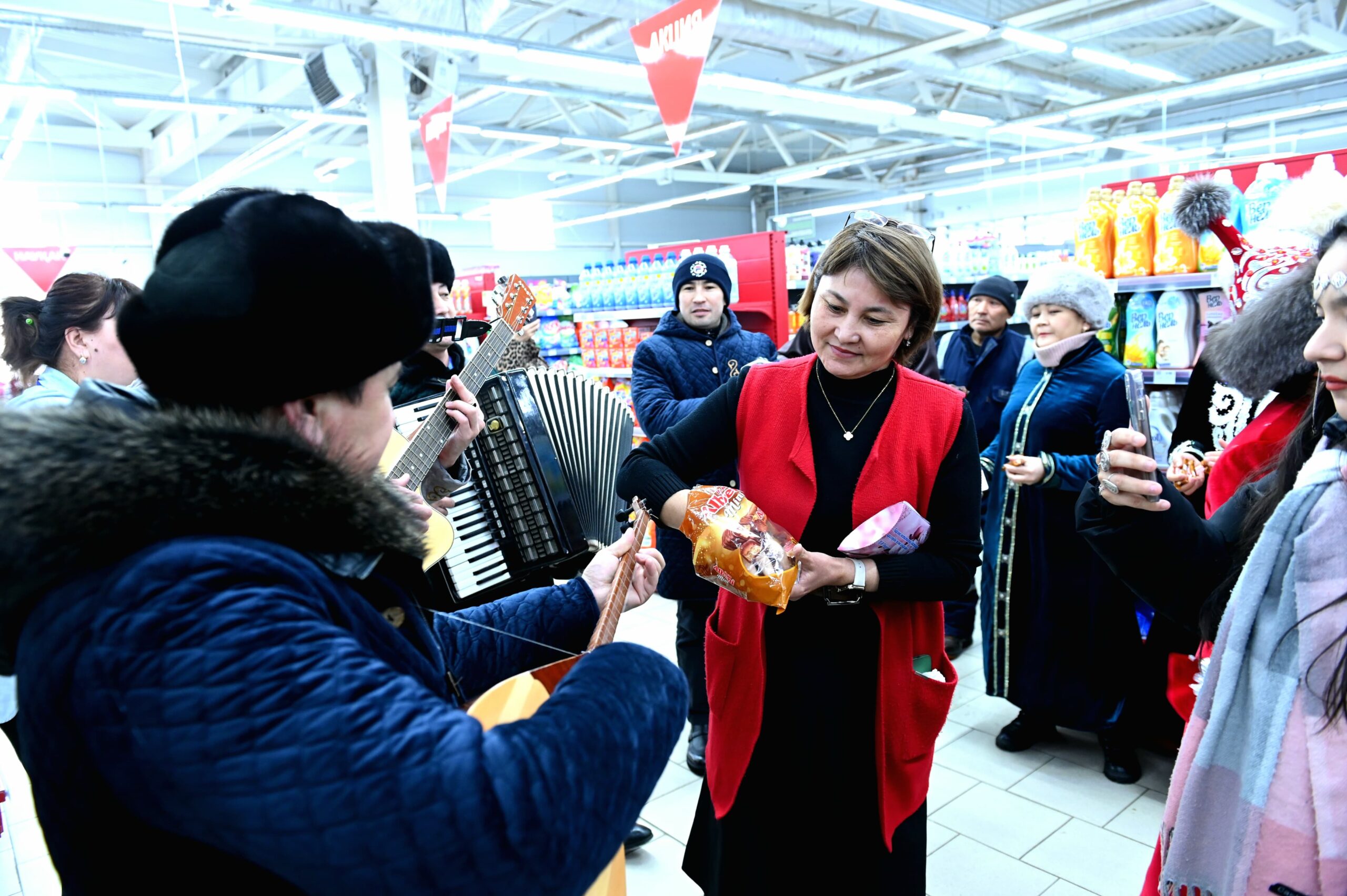 — Кеше мәдениет үйінің артистері Тұрғындар қалашығындағы базар, «Анвар», «Дина» супермаркеттеріне барып, жанды дауыста өнер көрсетті. Банк қызметкерлерін де мерекемен құттықтап, әрқайсысына естелік сыйлықтар үлестірді. Биыл Алғыс айту күні Рамазан айымен тұспа-тұс келгендіктен, қала тұрғындарына ішінде құттықтау хаты бар тіскебасар салынған сөмке мен магнитті күнтізбе тараттық. Әртістердің орындауындағы әндер мен шағын сыйлықтар қала тұрғындарын бейжай қалдырмай, көтеріңкі көңіл күй сыйлағаны сөзсіз. Енді алдағы Наурыз мерекесінде адам көп жиналатын алаңдарда мерекелік думан ұйымдастырып, тұрғындарға бауырсақ пен наурызкөже таратамыз, — дейді ұйымдастырушы.