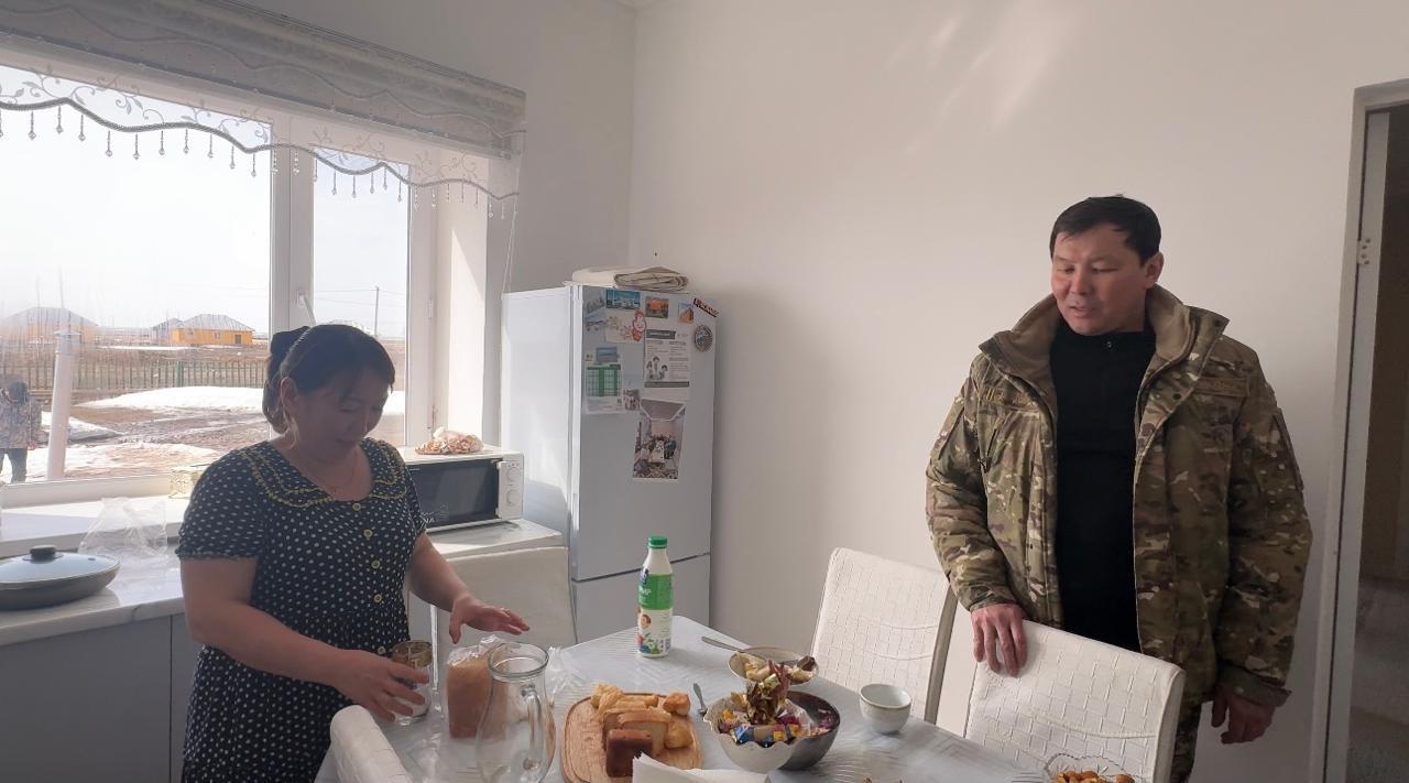 Өңір басшысы Құрал Дүйсенғалиевтің үйіне барды. Ол бұрын Екпетал ауылында тұрған. Былтыр үйі суға кетіп, отбасымен аудан орталығынан салып берген су жаңа баспанаға көшіп келді. Ол аймақ басшысына қазір жаңа үйінде еш қауіпсіз қалыпты жағдайда тұрып жатқандарын айтып ризашылығын жеткізді.