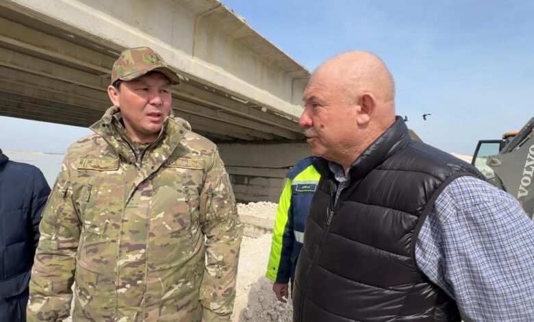 Ойыл ауданына жұмыс сапары кезінде Асхат Шахаров ауылдың кіреберісіндегі уақытша техникалық көпірдің құрылыс барысын тексерді.
