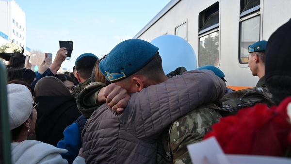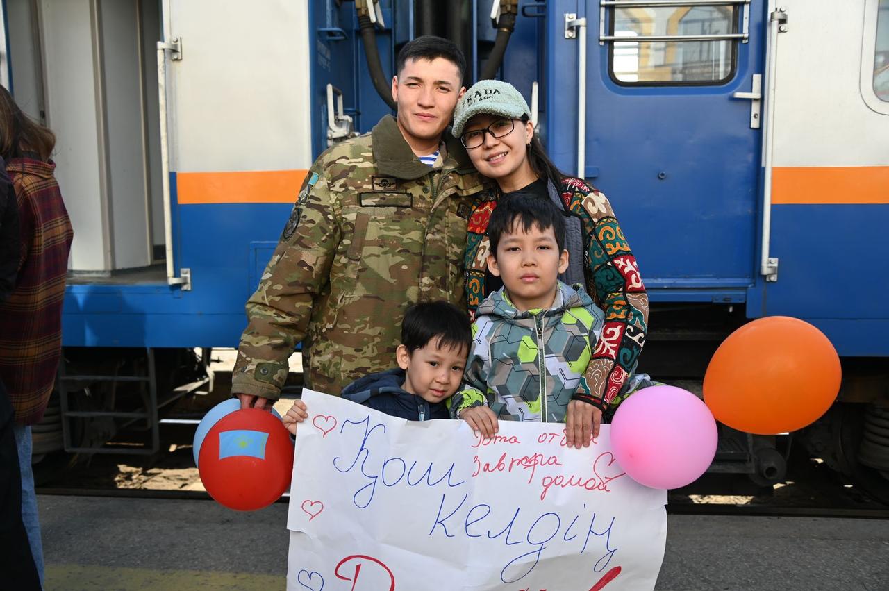 Талдықорған қаласындағы 37-ші жеке десанттық-шабуылдау бригадасында борышын өтеген 35 десантшы-жауынгерді Ақтөбе қаласының Астана және Алматы аудандарының Қорғаныс істері жөніндегі бірлескен басқармасының командалық құрамы және жауынгерлердің тума-туыстары перронда салтанатты түрде қарсы алды.