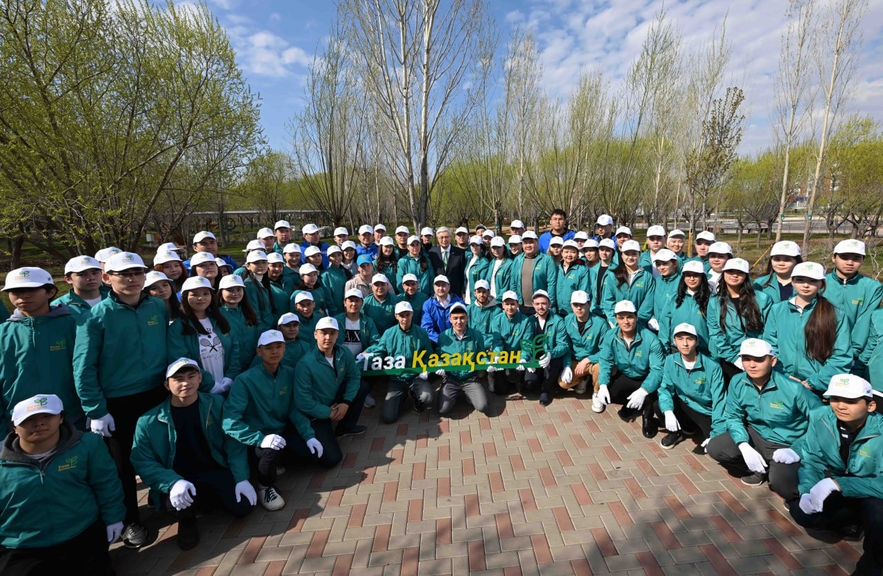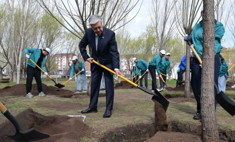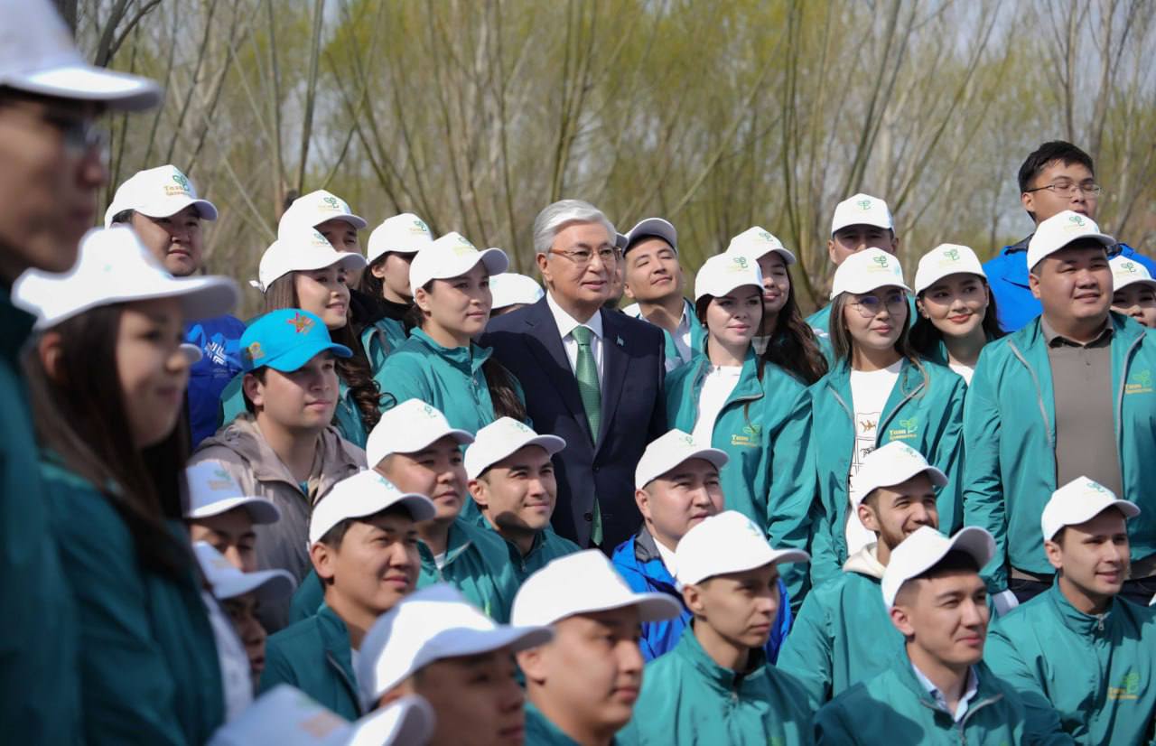 Президент Қасым-Жомарт Тоқаев «Таза Қазақстан» экологиялық фестивалі аясында Астана қаласындағы «Жастар» саябағында экобелсенділермен бірге ағаш екті.