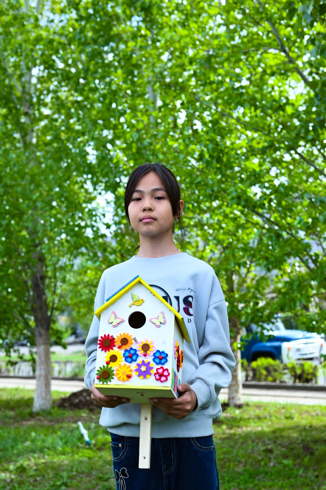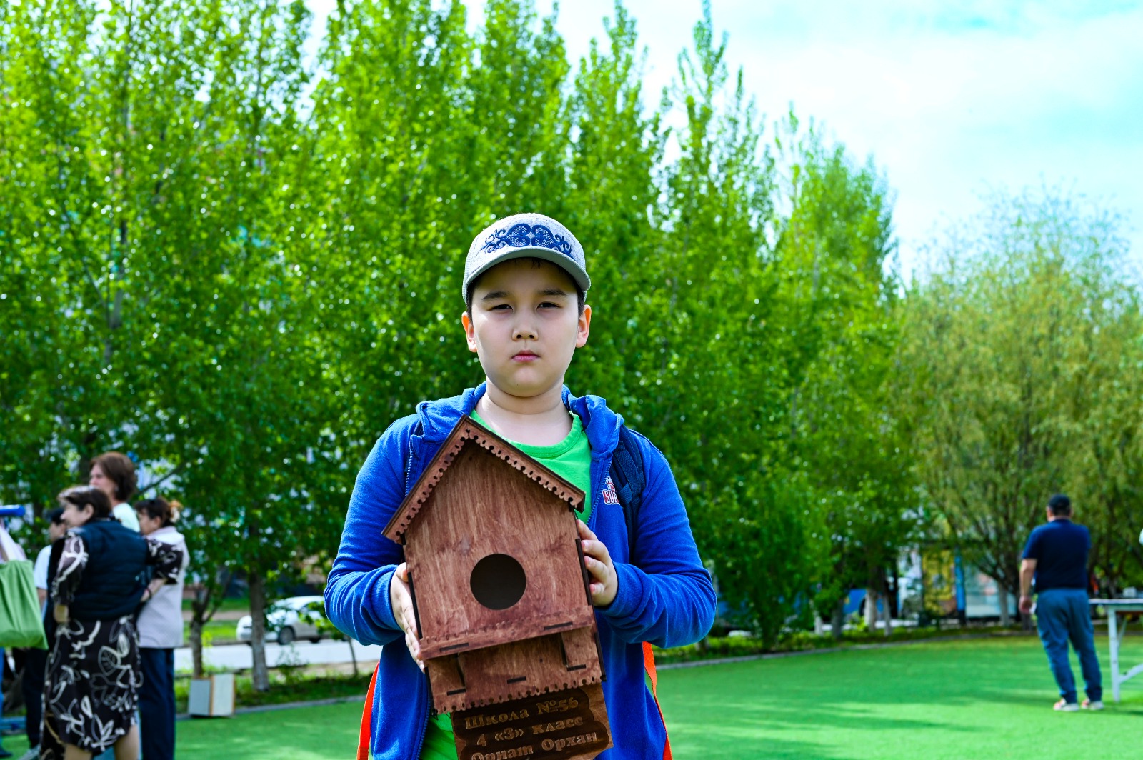 3 «з» сыныбында оқитын Әлрами Тоқтамысовтың акцияға арнап әкелген ұясы әдемі шыққан. Баланың әжесі Ақмоншақ Ембергенованың айтуынша, оны жасауға бүкіл отбасы атсалысқан.