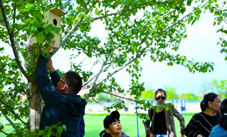 «Мектебімізде осыдан үш жыл бұрын «Аналар мектебі» құрылған болатын. Ата-аналардың мұндағы мақсаты — тәрбие ісін ұстаздармен бірлесе жүргізуге барынша ден қою. Осы орайда үнемі түрлі бастамаларға, пайдалы істерге ұйытқы болып жүретін ата-ана көп. Бүгінгі бастаманы біз, мектеп ұжымы, өз тарапымыздан қолдадық. Барлығы 70 ұя жасалды. Бір бөлігі — мектеп ауласына, одан соң Тәуелсіздік даңғылы бойындағы ағаштарға орнатылды. Бүгін тағы бір тобын осы саябаққа әкелдік», — деді мектеп директоры Гүлнара Нарымбетова.