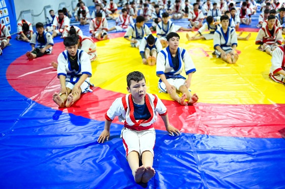 — Спорттық жиынға бірінші рет қатысып тұрмын. Ұнап жатыр. Жаттығу кезінде физикалық тұрғыда дамып, техникамызды шыңдаймыз. Әдіс-тәсілдерімізді қолданып көреміз. Осы спорт кешенінде орналастық. Таңғы сағат сегіз жарымда тұрып, сосын таңғы ас ішеміз. Сағат 11.00-ден 13.00-ге дейін жаттығу болады. Одан соң жуынып-шайынып, түскі ас ішуге барамыз. Сосын ұйықтаймыз. Түстен кейін тағы да жаттығуға барамыз. Кешкі ас ішіп алып, ұйықтаймыз. Жан-жақтан келген балалармен танысып, достасып та кеттік, — деді қазақ күресі мен белбеу күресінен облыс чемпионы Назар Мешітбаев.