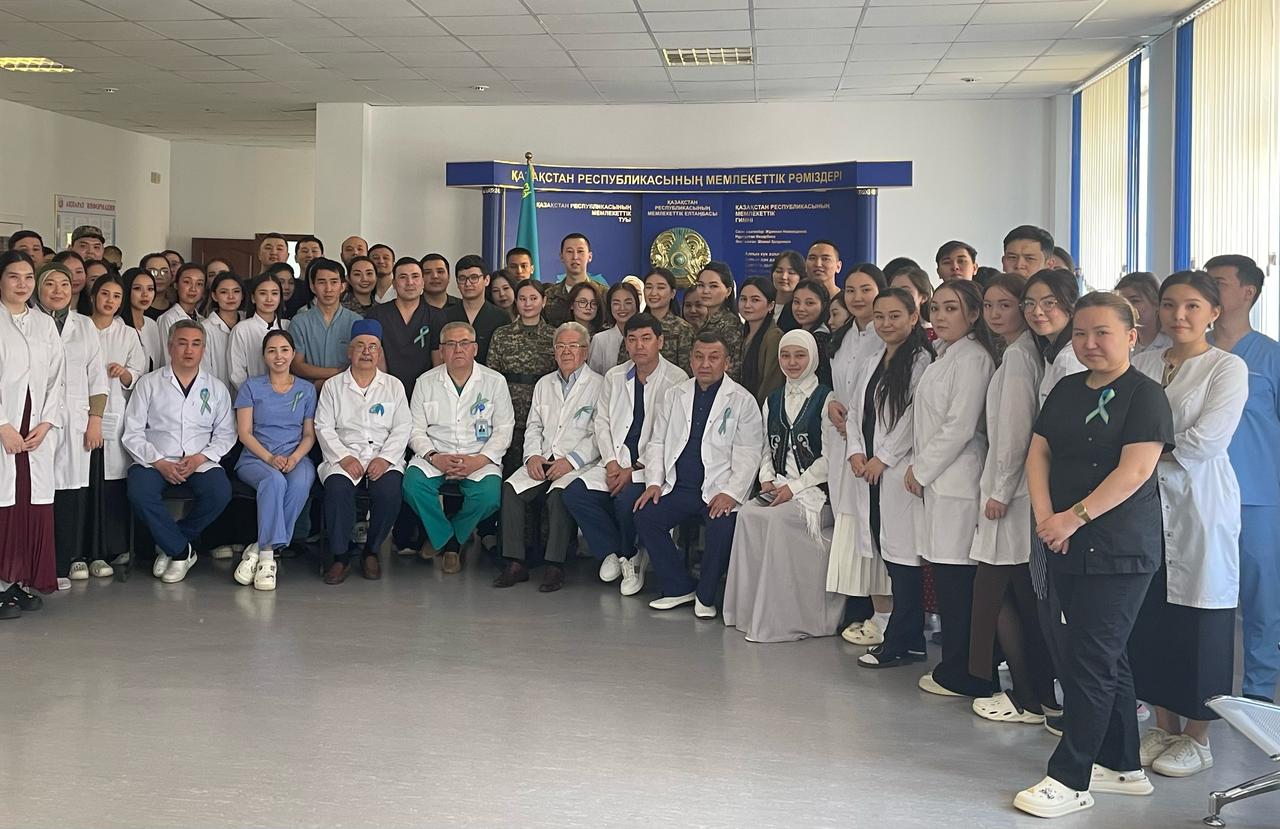 Кафедра меңгерушісі Асылбек Түсіпқалиев пен балалар ауруханасының бас дәрігері Нұрлан Қожин жиналғандарға сұрапыл соғыста адам өмірін сақтап қалған ақ халатты абзал жандардың ерлігіне тоқталып, жиналғандар жауынгерлер рухына тағзым етіп, бір минут үнсіздікпен еске алды. Әсерлі бейнебаян бұл сәттің маңызын одан әрі тереңдете түсті.