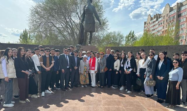 Шараға қатысушылар әуелі Әлия Молдағұлованың ескерткішіне гүл шоқтарын қойып, бір минут үнсіздікпен еске алды. Батырдың көзсіз ерлігі насихатталып, тарихи деректер айтылды. Оның сіңлісі Тәжен Нұрмұханбетқызы сөз сөйлеп, батыр апасының рухына тағзым етті. Қаһарман қыздың туыстары студенттерге Әлия Молдағұлованың балалық шағы жайлы әңгімелеп берді.