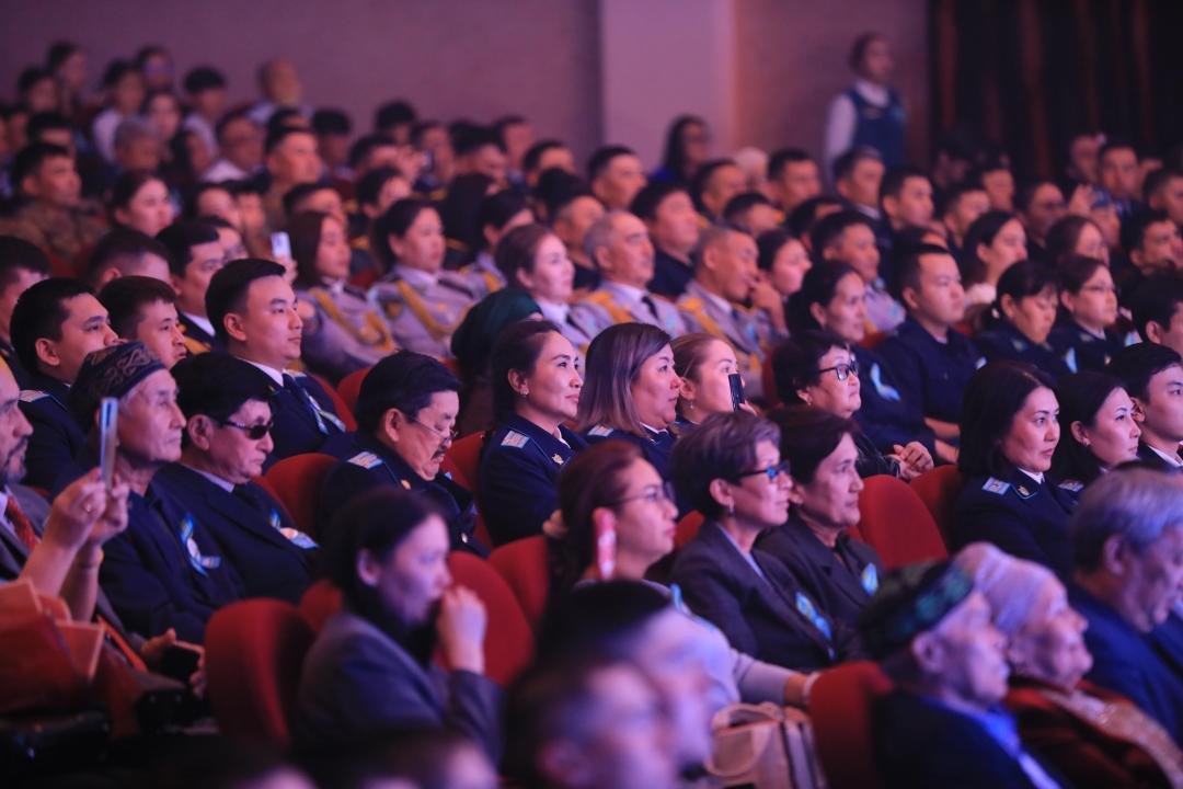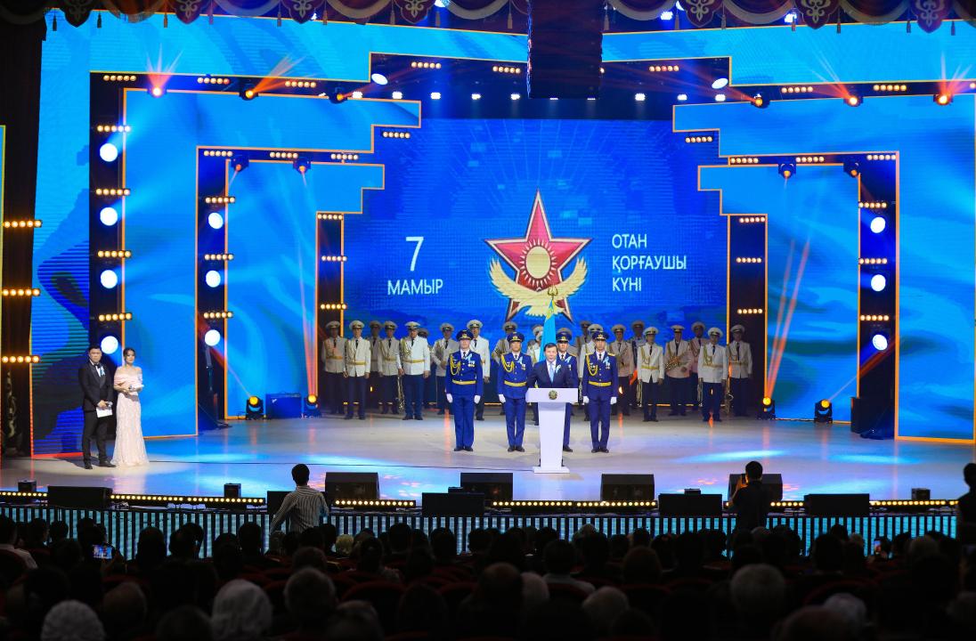 Шараның ресми бөлімінен кейін сахнада айбынды әскеріміздің әлеуеті көрсетілді. ҚР Ұлттық ұланының 6655, ҚР Қорғаныс министрлігі 30 238, ҚР ТЖМ Көкұлы Есет батыр атындағы 20982 және 20709 әскери бөлімдері, ҚР ҰҚК Шекара қызметі саппен жүріп өтті. Ал патриоттық рухтағы концерттік бағдарлама көрермендерге жағымды әсер сыйлады.