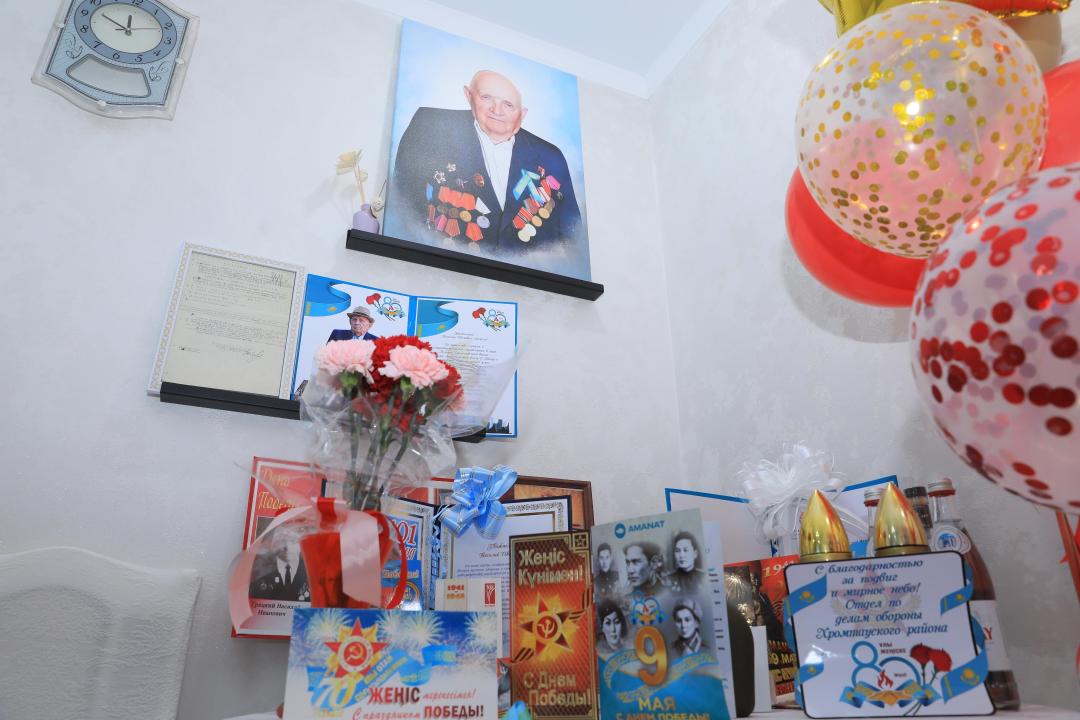 Жеңіс күні Хромтау қаласында ардагер тұратын үйдің ауласында салтанатты шара өтті. Оған облыс және аудан әкімдіктерінің өкілдері, әскери комиссариат қызметкерлері, жастар, оқушылар, қоғамдық ұйымдар мен қала тұрғындары қатысты.