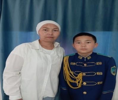 7 мамыр — Отан қорғаушылар күніне орай Астана қаласында өткен үлкен шарада балам Ішкі істер министрі, генерал-лейтенант Ержан Сәденовтің қолынан үлкен сахнада Алғыс хат алды. Баламды бейнероликтен көріп отырып, ана жүрегімде мақтаныш сезімі пайда болды. Тіпті қуаныштан жыладым. Осындай іс-шараға қатысуға мүмкіндік туғызған облыстық білім басқармасына, облыстық полиция департаментіне, №65 орта мектептің директоры Марфуха Жантуринаға және мектеп ұжымына ризашылығым шексіз. Осыдан соң Азаматымның әскери қызметкер болатынына сенімдімін. Балама аналық жүрегімнен ақ жол тілеймін, ұстаздарына мың алғыс!
