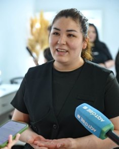 — 13 сәуірде «Мансап» орталығына жұмыссыз ретінде тіркелдім. Қазір білікті мамандардан шаш қиюдың түрлі әдістерін үйреніп жатырмын. Көпбалалы анамын. Бір қуантарлығы, курсты оқып бітіргеннен кейін сән салонында бір жыл көлемінде еңбек ете аламыз. Өзіне күтім жасайтын әйел кем дегенде шаштаразға айына екі мәрте келеді. Ерлерге қарағанда әйелдер шашын жиі сәндейді. Ал біздің ендігі мақсатымыз — келушілердің көңілінен шығып, әдемі шаш үлгісін жасау, — дейді жоба қатысушысы.
