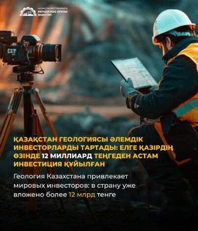 Қазақстан геологиясы әлемдік инвесторларды тартады: елге қазірдің өзінде 12 млрд теңгеден астам инвестиция құйылған