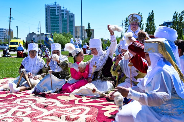 — Фестивальге Жаңақоныстан үш әже болып келдік. Жастарға жүн иіру, тоқыма тоқу секілді ұлттық қолөнердің түрлерін көрсетіп жатырмыз. Қазір жасым жетпіске жақындаса да әлі күнге дейін жүн иіремін. Биыл түйе жүнінің келісін 2 мың теңгеден сатып алдым. Балаларыма, немерелерімекеудеше, қолғап тоқимын, — деді Жаңаөмір Жукина.