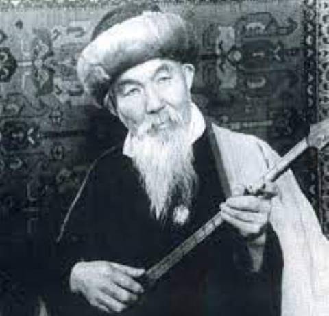 …Қанафия асығыс шығып кетті. Асханадан алас-күлес тамақтанып кеп, бүгінгі газеттерді алып қарап отыр едім, есік қағылды.Атып тұра кеп есік аштым. Қанафия өте кішіпейіл, мәдениетті жігіт еді. Есікті өзі ашып, бірақ өзінен бұрын ақ сақалды, ұзын бойлы, зор денелі, сол қолында қырғыз қобыздарындай шағын, Арқаның ән домбырасын қымтап ұстаған үлкен кісіні кіргізді.