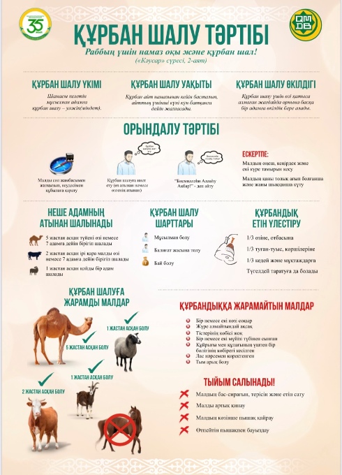 —Егер жағдайы келмесе, құрбандық шалу уәжіп болмайды. Мұндай адамдар мереке күні отбасы мүшелеріне сыйлық беріп, жақындарын құттықтап, игі істер жасау арқылы мерекені лайықты түрде қарсы алуы керек.