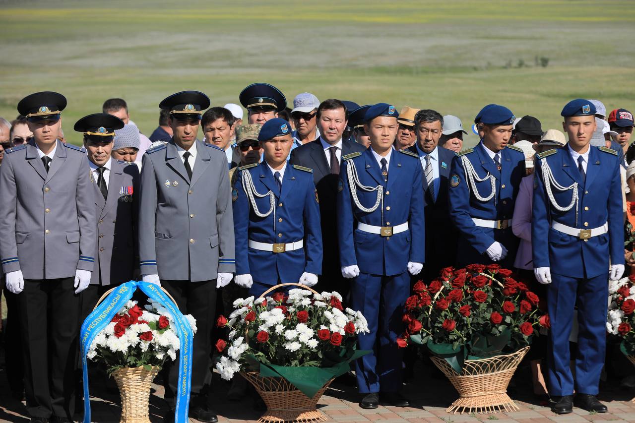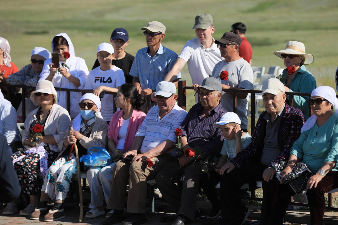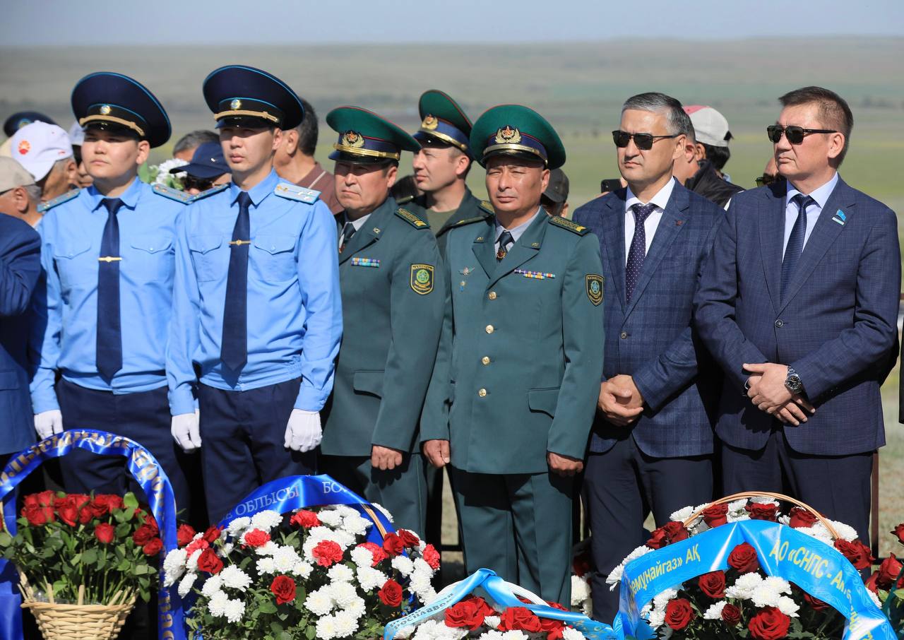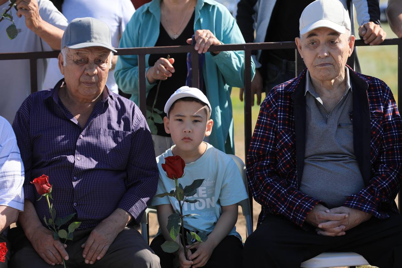 🕊️ Жиналғандар боздақтардың рухына тағзым етіп, бір минут үнсіздікпен еске алды, ескерткішке гүл шоқтарын қойды.