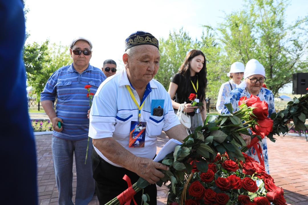 Қатысушылар Отан үшін от кешіп, сұрапыл соғыста ерлікпен қаза тапқан батырды бір минут үнсіздікпен еске алды.