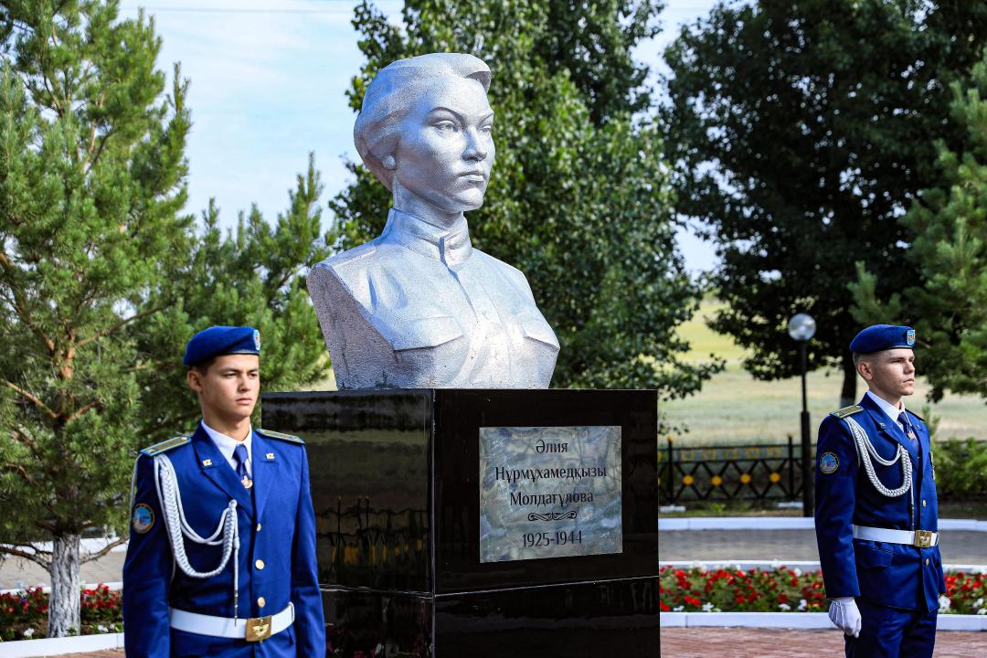 Батырдың туған жері – Қобда ауданы Бұлақ ауылындағы ескерткішке гүл шоқтарын қою рәсімі өтті. Салтанатты шара Кеңес Одағының Батыры, тарихи тұлға Әлия Молдағұлованың 100 жылдығына арналды.