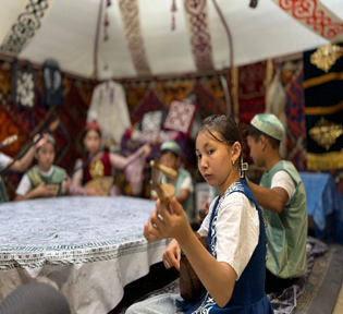 Лагерь табиғи ортада өтетіндіктен, балалар ұлттық тағамдарды дайындауды, киіз үй тігуді, қазанда ас даярлауды, самаурында шай қайнатуды, дала өмірінің қыр-сырын меңгереді.