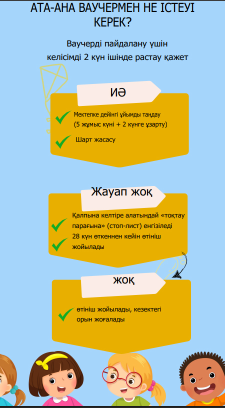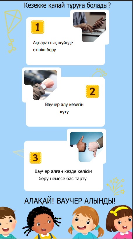 ***бала бұрын балабақшаға орын үшін кезекке тұрса, қазір ваучерге кезекке тұрады.
