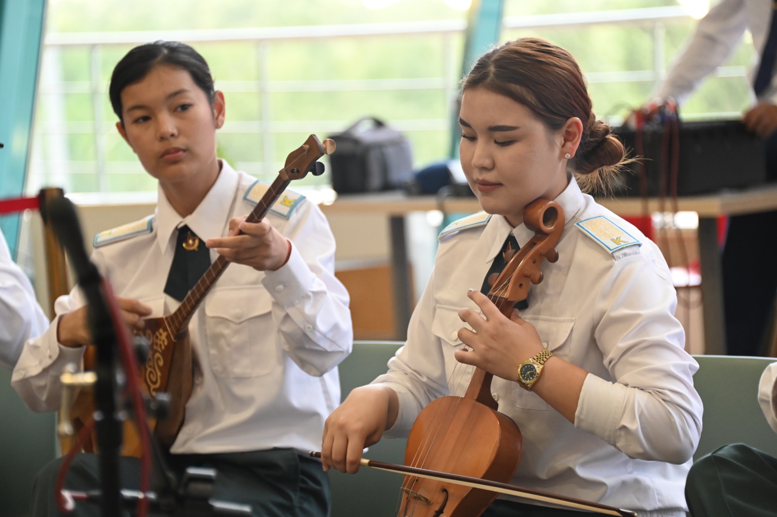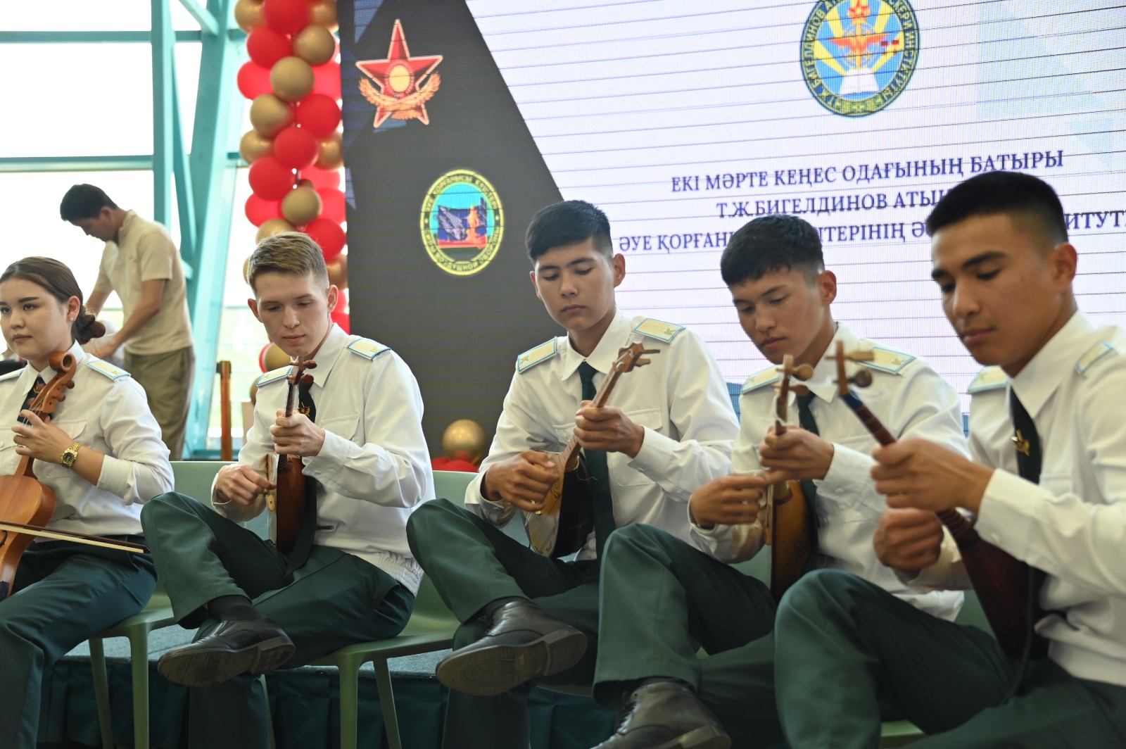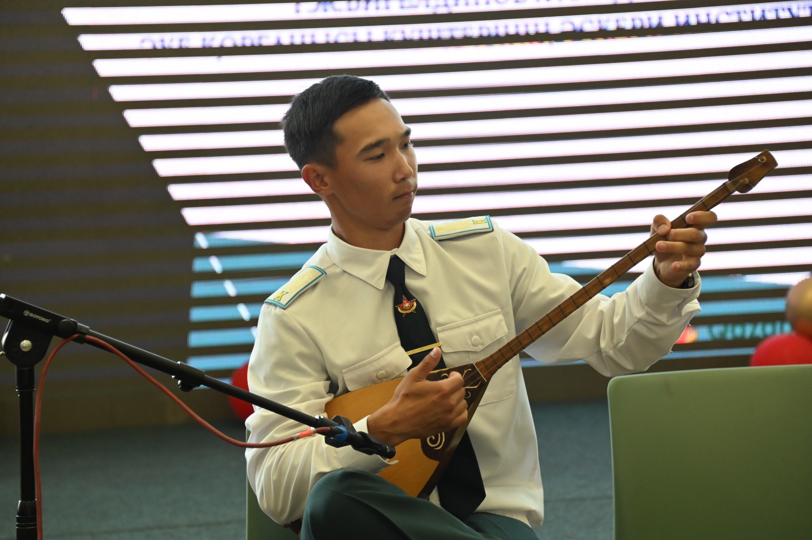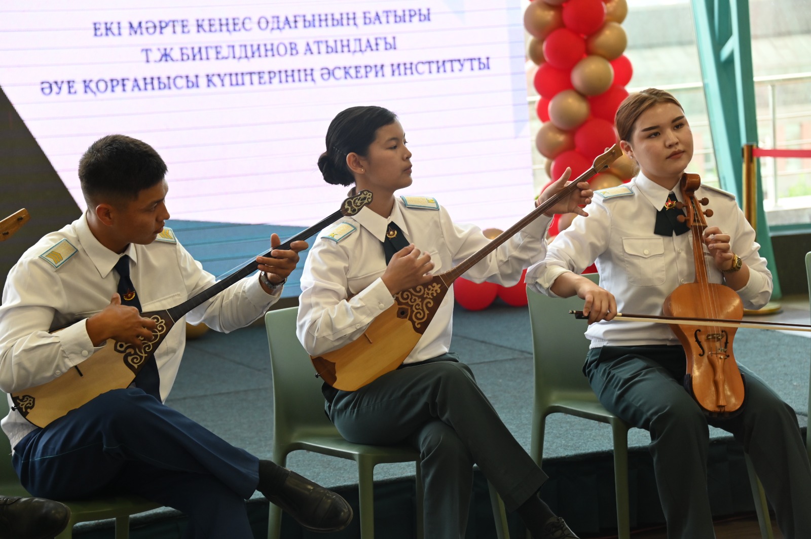 Әуе қорғанысы күштері әскери институтының курсанттары домбыра және қобыз аспаптарында ұлттық күйлер мен халық әндерін орындап, қала тұрғындары мен қонақтарына мерекелік көңіл күй мен ұлттық рух сыйлады.
