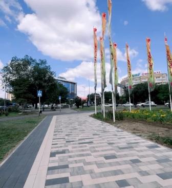 Аталған учаскеде 13 500 шаршы метр аумаққа брусчатка төсеу жоспарланған. Қазіргі таңда мұнда төрт бригада жұмыс істейді. Жұмыста қолданылып жатқан тас төсеніштер — отандық өндірістен шыққан заманауи әрі сапалы материалдар.