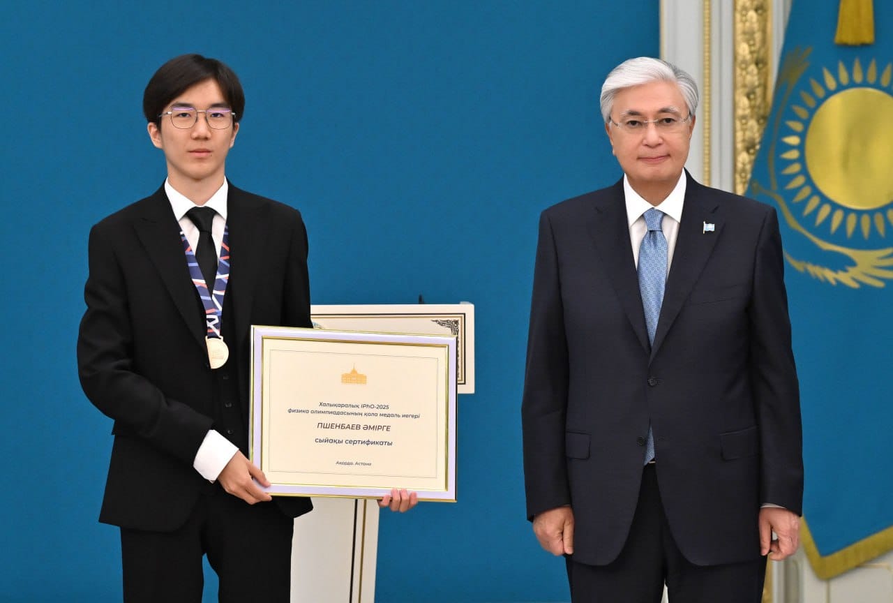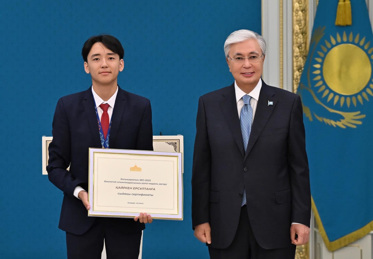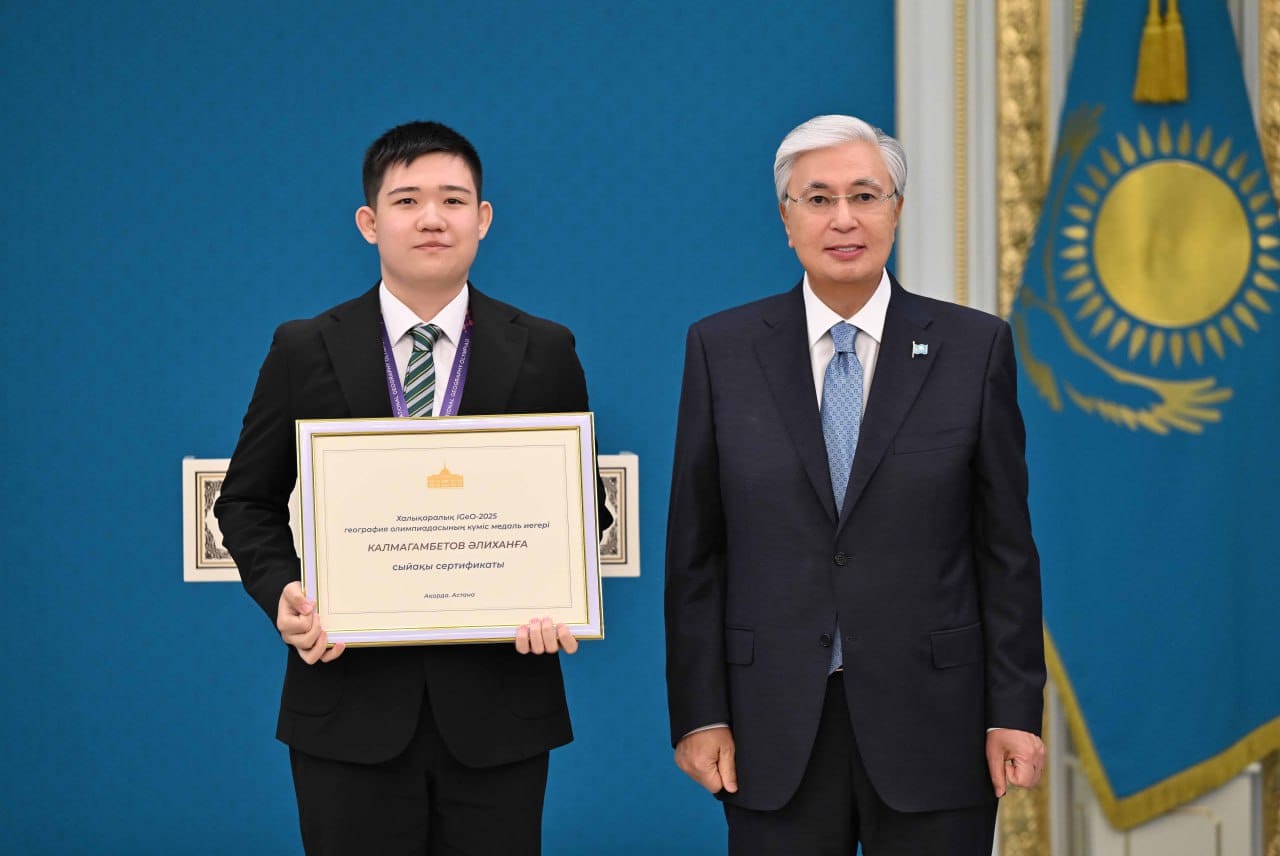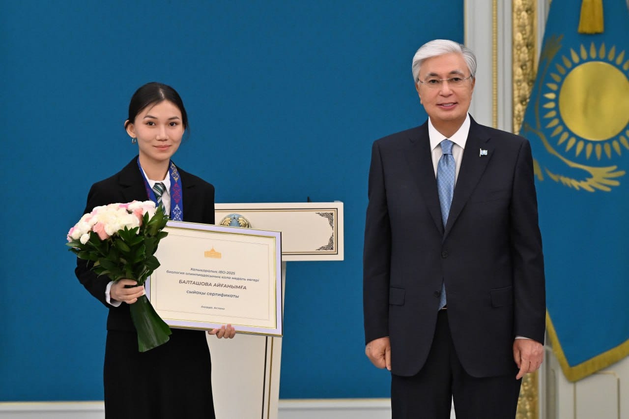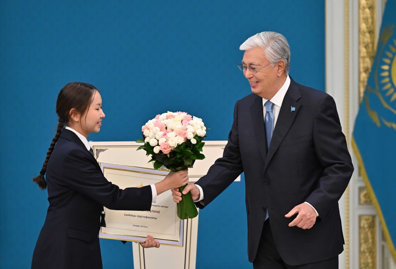 – Жастарымыз жаһандық спорт және өнер додаларында жеңімпаз атанып, туымызды көкте желбіретіп жүр. Білім саласындағы беделіміз де артып келе жатыр. Былтырдан бері оқушыларымыз 30-дан астам халықаралық олимпиада мен ғылыми жарысқа қатысып, мыңға жуық медаль алды. Оның 200-ге жуығы – алтын, 300-ден астамы – күміс, ал 500-ге жуығы – қола медаль. Бұл тамаша көрсеткіш Қазақстандағы білім сапасының деңгейі жоғары екенін көрсетеді. Тағы да қайталап айтамын, біз әлемдік жарыста ел намысын қорғаған әр жеңімпазды мақтан тұтамыз. Сіздерді еліміздің бетке ұстар, лайықты азаматтары деп санаймын. Болашақта да Қазақстанның одан әрі дамуына қомақты үлес қосатындарыңызға кәміл сенемін, – деді Президент.