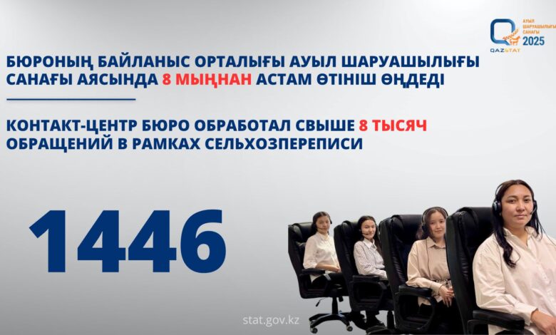 Тамыз айының басынан бастап Ұлттық статистика бюросының 1446 байланыс орталығы азаматтарға Ұлттық ауыл шаруашылығы санағына қатысу мәселелері бойынша белсенді түрде кеңес беріп келеді.